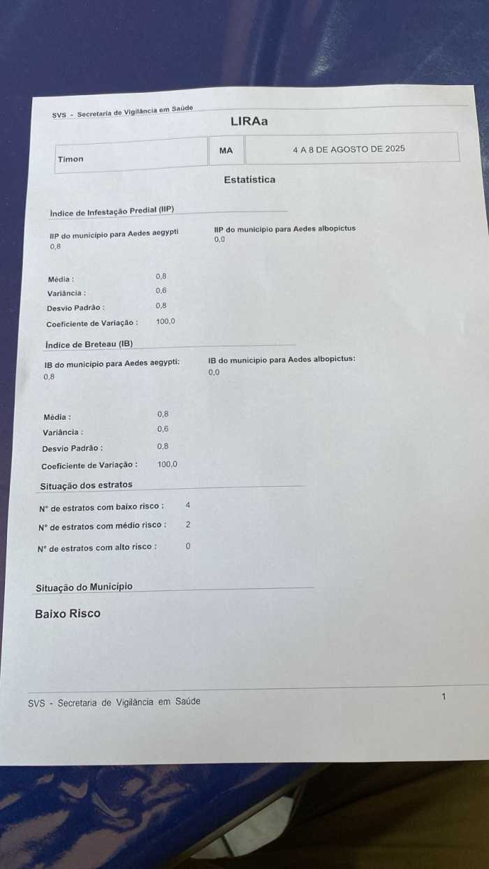 Em Timon, um motivo especial de comemoração se destaca: o Índice de Examine de Larvas do Aedes aegypti (LIRAa) caiu para 0.2