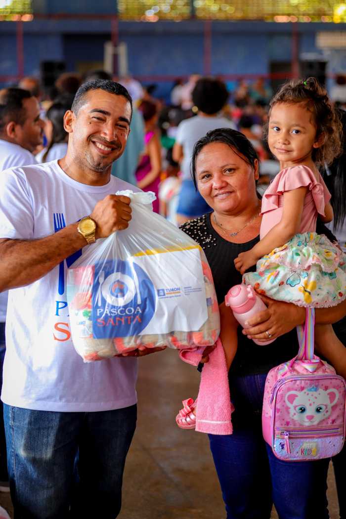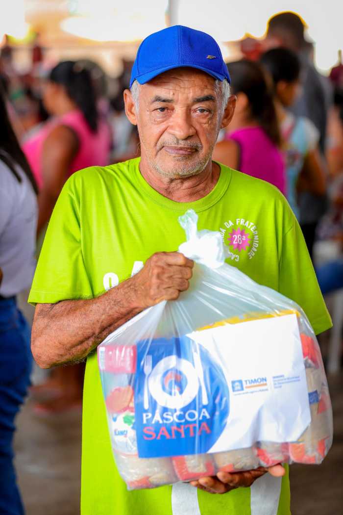 O programa Páscoa Santa integra um conjunto de ações A Prefeitura de Timon, por meio da Secretaria Municipal de Desenvolvimento Social (Semdes), deu continuidade, na última quarta-feira (01), às ações do programa Páscoa Santa. A entrega foi realizada na quadra da EMEF João Fonseca Maranhão, no bairro Parque Alvorada, beneficiando centenas de famílias em situação de vulnerabilidade social.