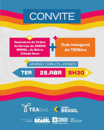A Prefeitura de Timon realiza nesta terça-feira, 28 de abril, às 8h30, no Ginásio Carlos Jansen, a assinatura da Ordem de Serviço da Arena Brasil, no bairro Cidade Nova, e a aula inaugural do programa TEAtivo.
